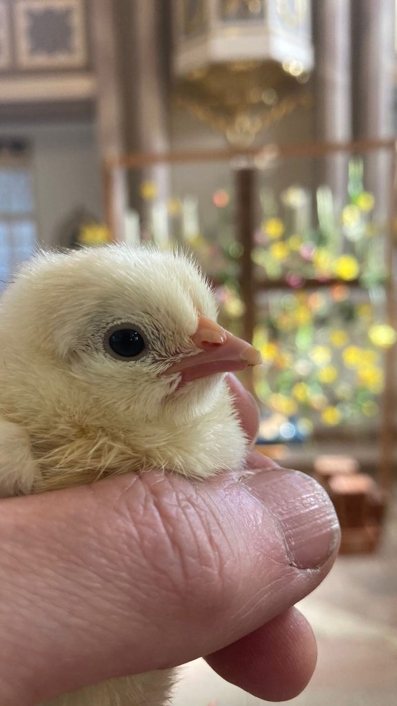 7 Osterküken wurden geboren und haben mitgefeiert – ganz zart. Was den Kaiser Maxentius damals so staunen lies, hatte auch rund 1700 Jahre später seine Wirkung nicht verfehlt: Das Leben wächst heimlich im Dunkel heran, doch plötzlich wird’s sichtbar! Wir staunen es an!